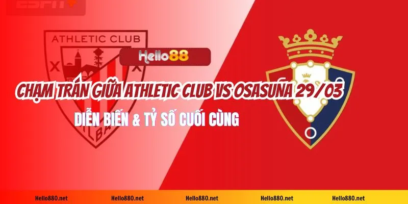 Athletic Club vs Osasuna sẽ có màn đối đầu đáng chú ý vào ngày 29/03/2025, hứa hẹn mang đến trận cầu hấp dẫn. Cả hai đội đều đang hướng đến mục tiêu quan trọng trong giai đoạn cuối mùa, khiến cuộc chạm trán này trở nên căng thẳng hơn bao giờ hết.Cùng hello88 theo dõi phân tích chi tiết trước thềm trận đấu để có cái nhìn rõ hơn về tương quan lực lượng và phong độ hai đội.